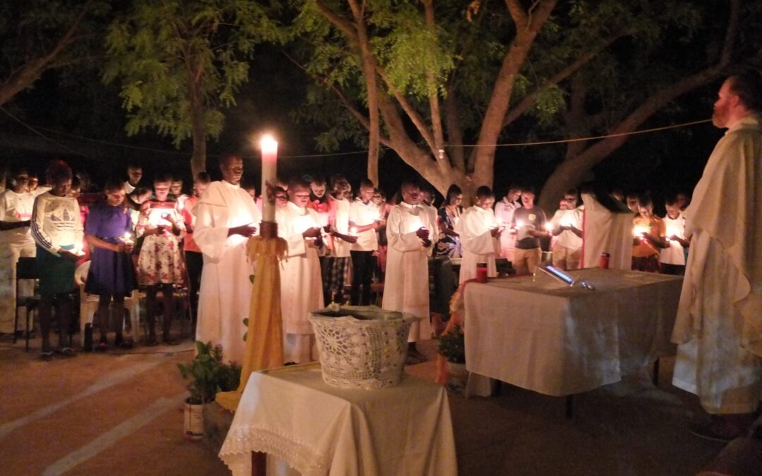 Renewal of Baptismal promises at the Easter vigil, with Fr Alan Neville MSC in Rumbek, South Sudan. by Karen Moloney | Apr 9, 2024